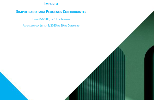 Código Do Imposto Simplificado Para Pequenos Contribuintes Posted on 21/01/202621/01/2026 by Maura Pernica Lei nº 5/2009, de 12 de Janeiro Alterado pela lei n.º 9/2025 de 29 de Dezembro Português | English